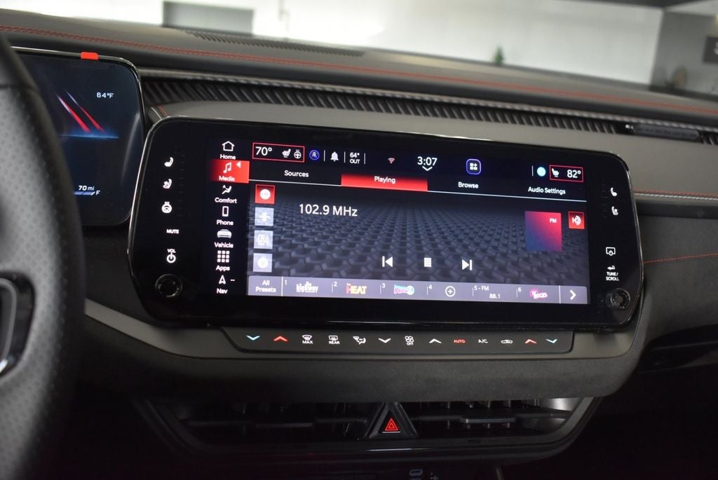Technology and driver engagement are front and center with a 12.3 Uconnect 5 touchscreen with Navigation, Heads-Up Display, Performance Pages, Surround View Camera System, 16 color driver display, wireless Apple CarPlay & Android Auto, and a wireless charging pad. Comfort isnt sacrificed, thanks to heated and ventilated front seats, heated second-row seats, memory seating, and a power tilt/telescope steering column.