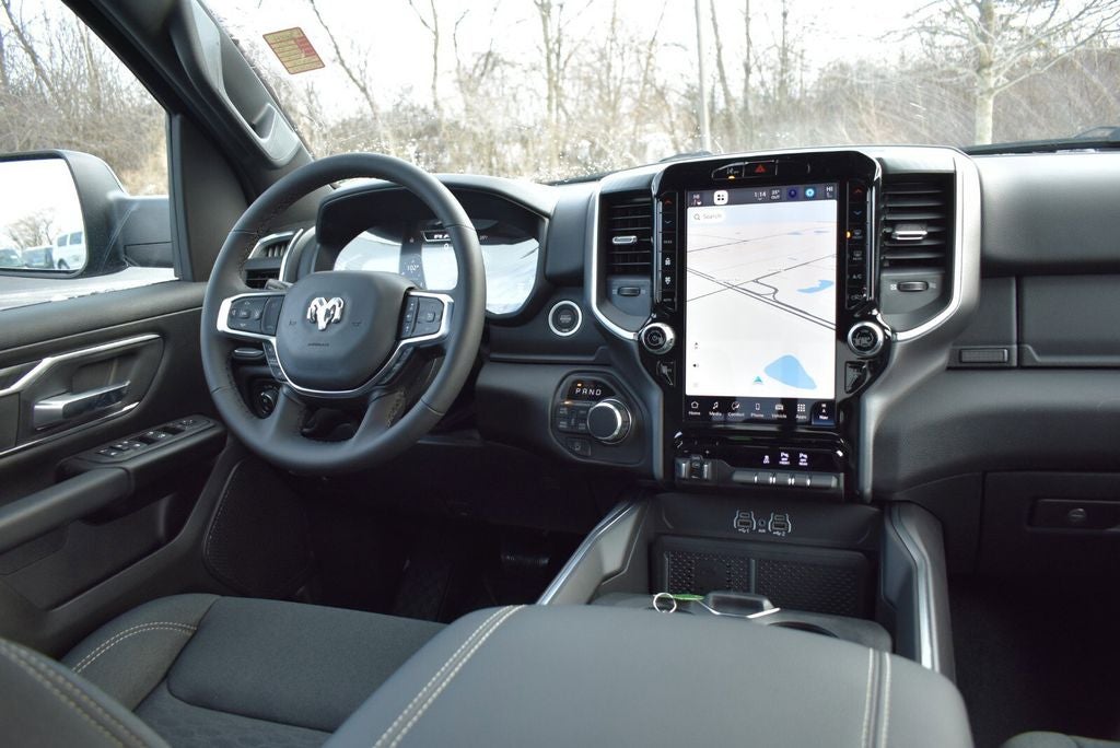Loaded with the Big Horn Level 2 Equipment Group and the aggressive Night Edition, this truck features the massive 12 Uconnect 5 touchscreen with navigation, Apple CarPlay & Android Auto, heated front seats, heated steering wheel, power adjustable pedals, 20 black aluminum wheels, dual exhaust with black tips, MOPAR spray-in bedliner, bed utility group, power sliding rear window, remote tailgate release, and 9 amplified speakers with subwoofer. The Anti-Spin rear differential and 4WD deliver confidence year-round.
